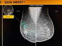 At first glance, the new breast mammography was also considered as normal and unchanged compared to the prior but MammoScreen™ pointed at a lesion on the right breast.