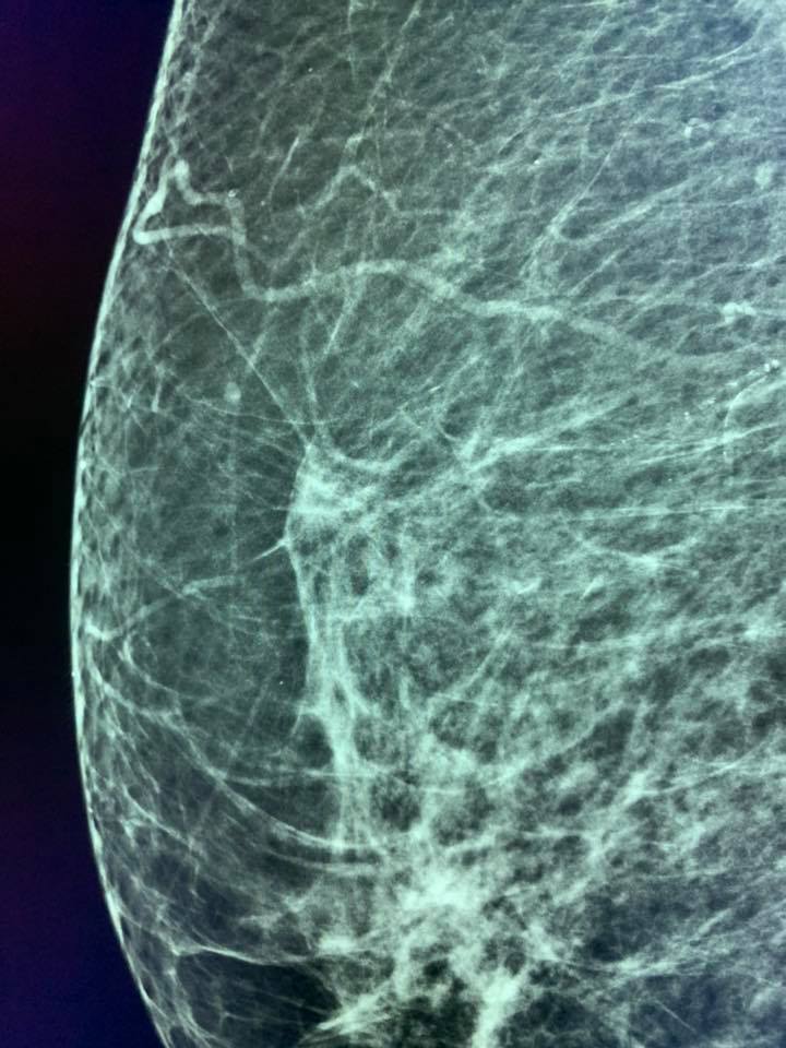 A 73-year-old woman had breast screening. Two years before her screening mammogram was considered normal by two readers.