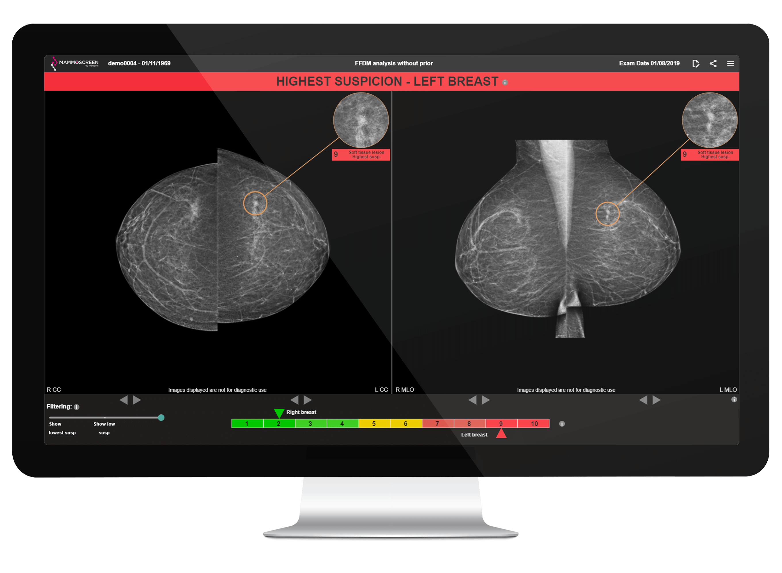 MammoScreen provides a quick and reliable confirmation on low and high suspicion cases, and what needs more attention.